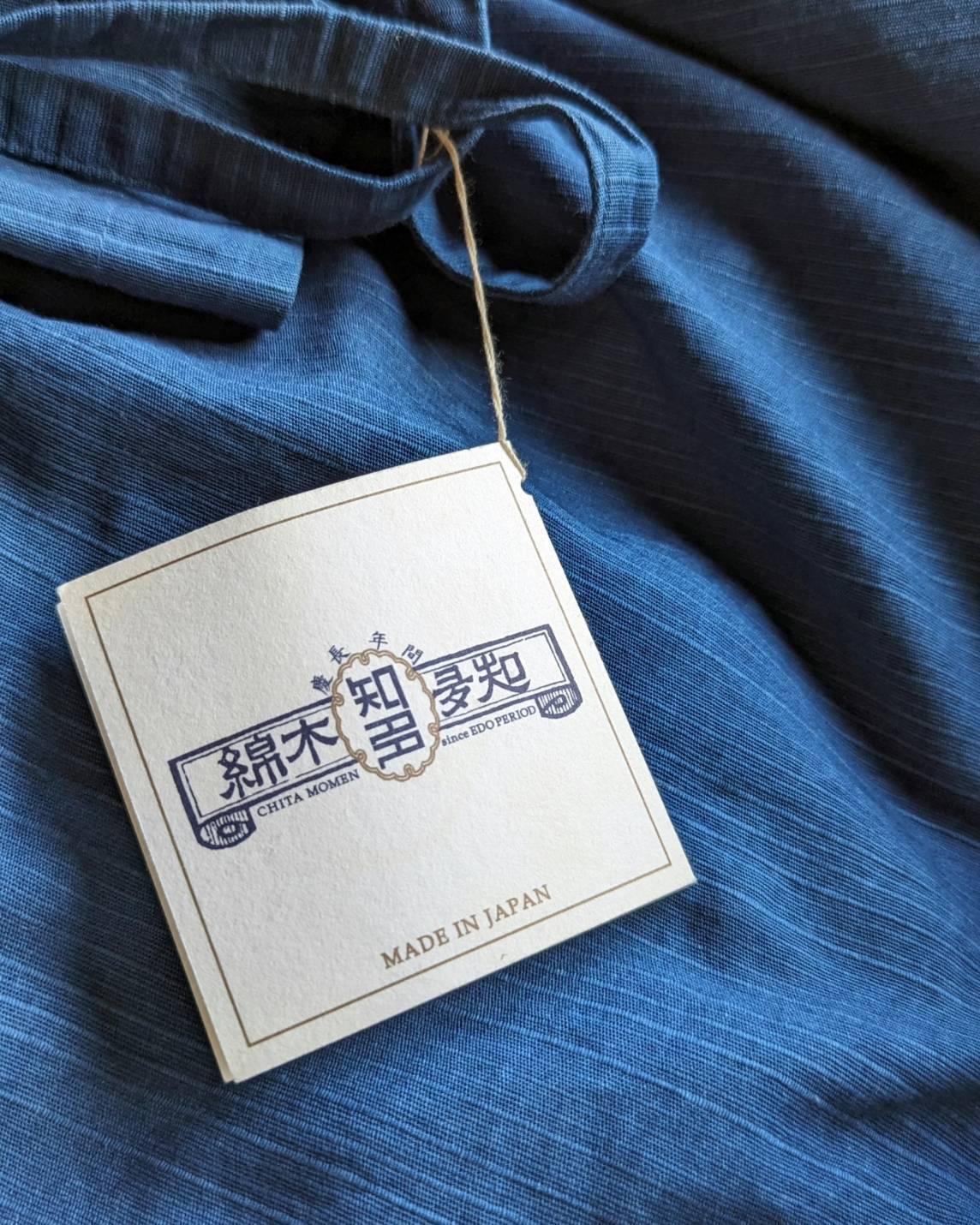 藍染や、作業をする時でも、普段着としても幅広くわたしが愛用している知多木綿のエプロンです。