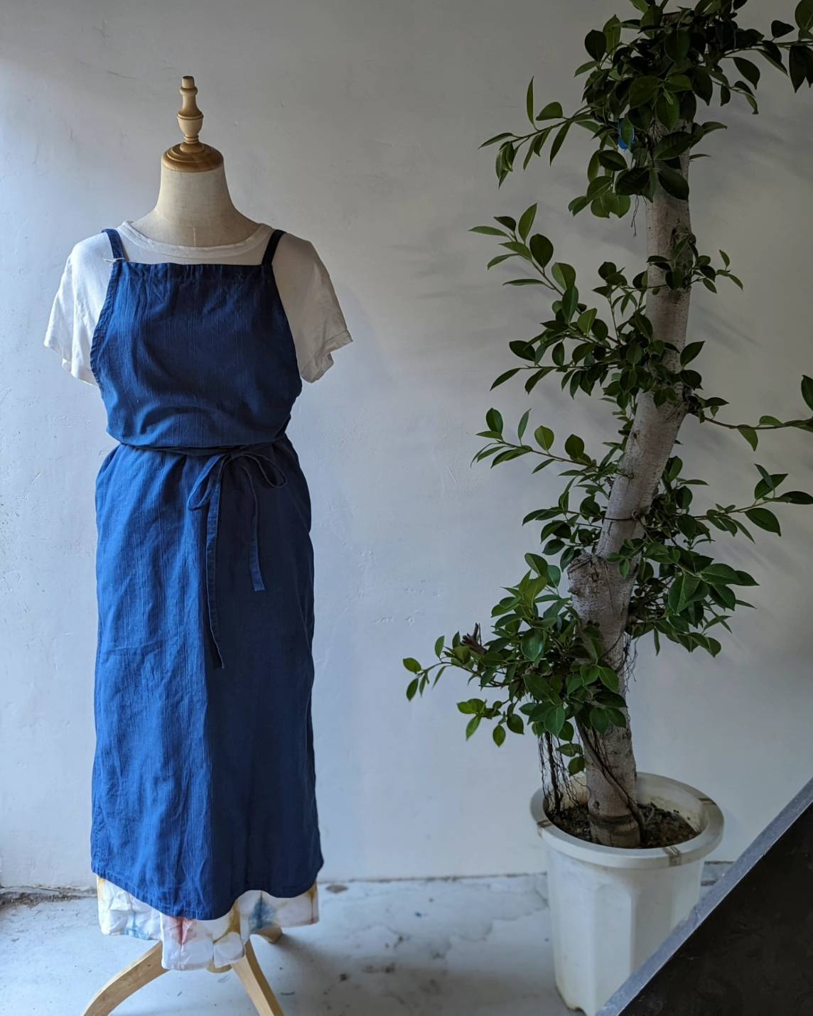 Aラインロングエプロン(シャンタン藍染ver.)